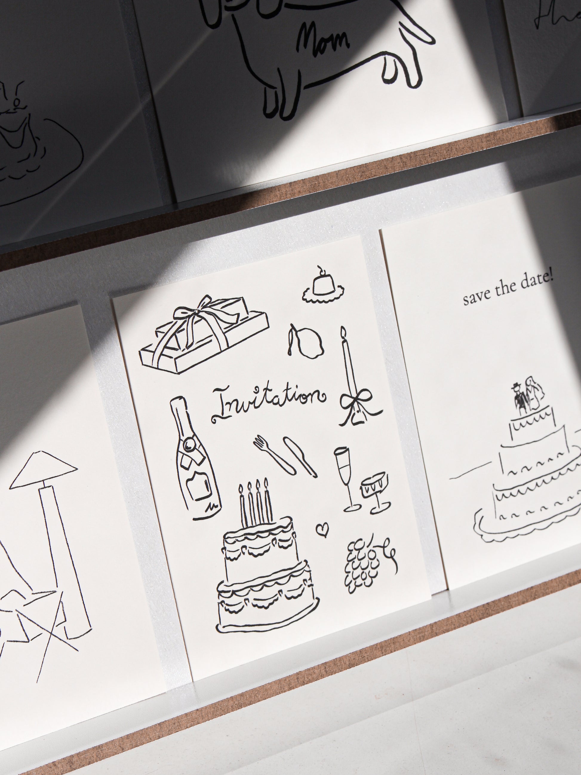 We've put together best-selling complete packages with popular designs for birthdays, weddings, new arrivals, thank you cards, and more (with approximately 30% Christmas motifs upon request). Optionally, a matching card stand is also available. (On loan).